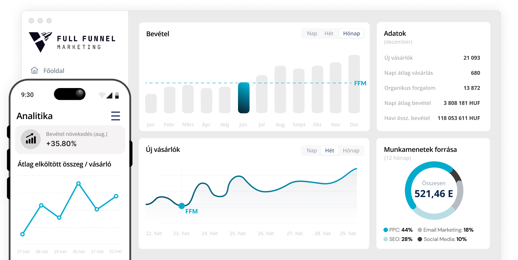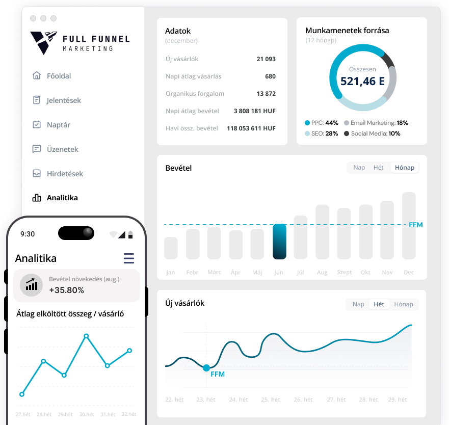A marketing egy befektetés. Szerencsére ma már nem igaz az a mondás, hogy a marketing fele kidobott pénz, de sajnos nem tudni melyik fele. Mérhető marketing rendszert építünk, ahol a No.1. cél a profit.