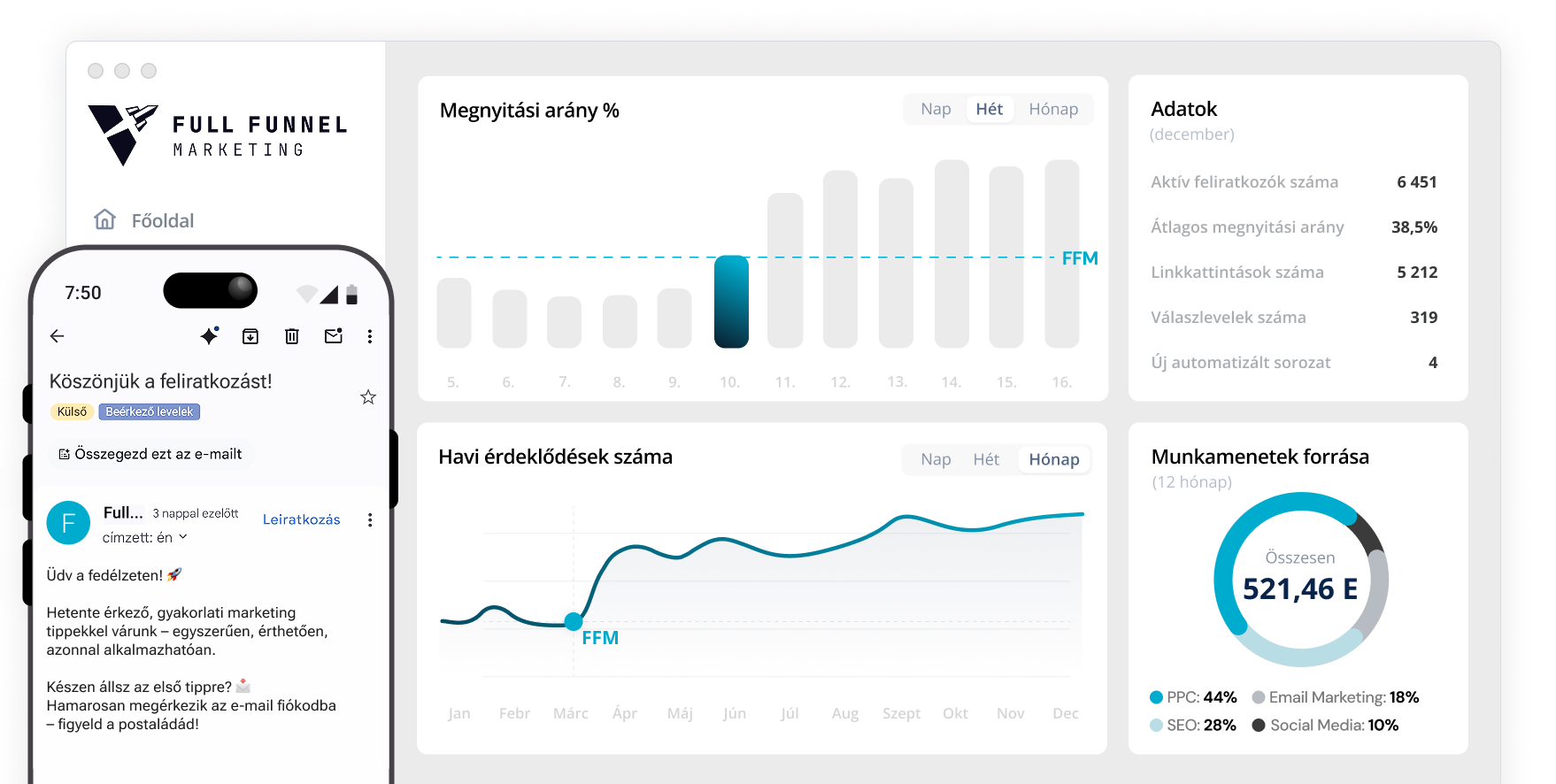 Havonta végignézzük, mi működik, mi nem, és javítunk a megnyitási + kattintási arányokon.