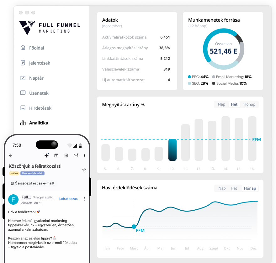 Nyitási, kattintási és aktivitási jelek alapján finomítjuk a kommunikációt.